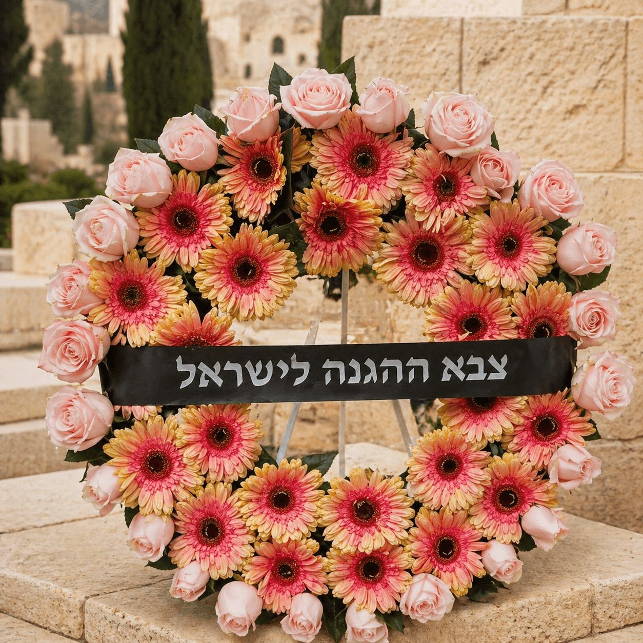 Ideal for funeral flower delivery in Jerusalem, this wreath offers a graceful and honorable presence for both private and official memorial occasions.